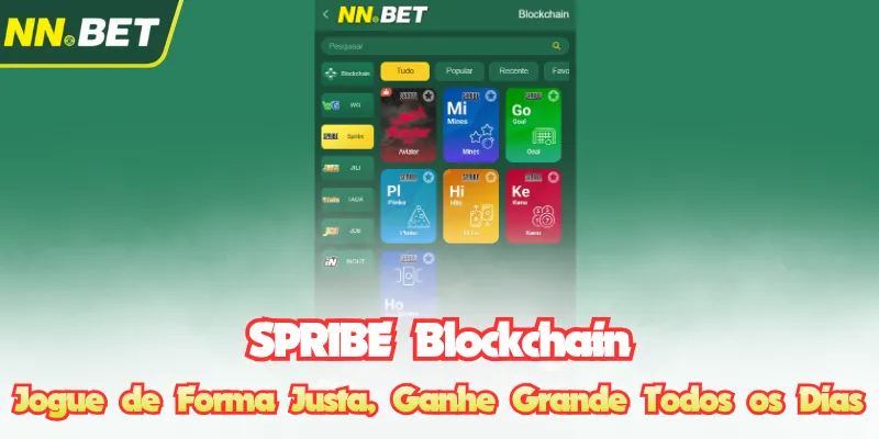 - Passo 3: Na interface da NNBET, procure a seção “Blockchain”. Lá você encontrará provedores como SPRIBE, JILI, TADA Blockchain… escolha SPRIBE Blockchain para começar a experimentar os jogos transparentes e justos verificados pela tecnologia de cadeia de blocos.